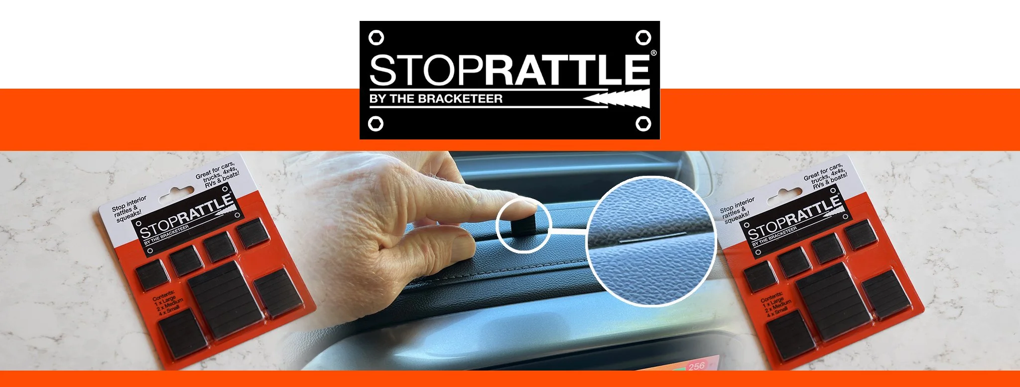 StopRattle works by either putting pressure on parts of the interior that are rattling or by spreading apart two interior joins that are rubbing together and squeaking. Learn more.